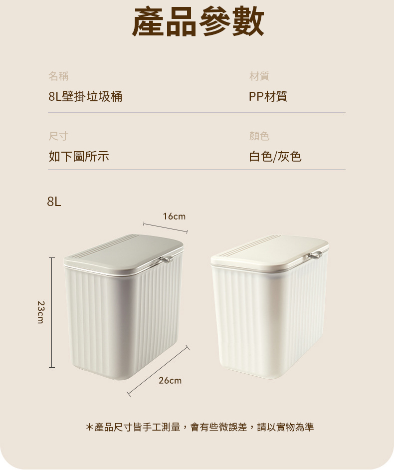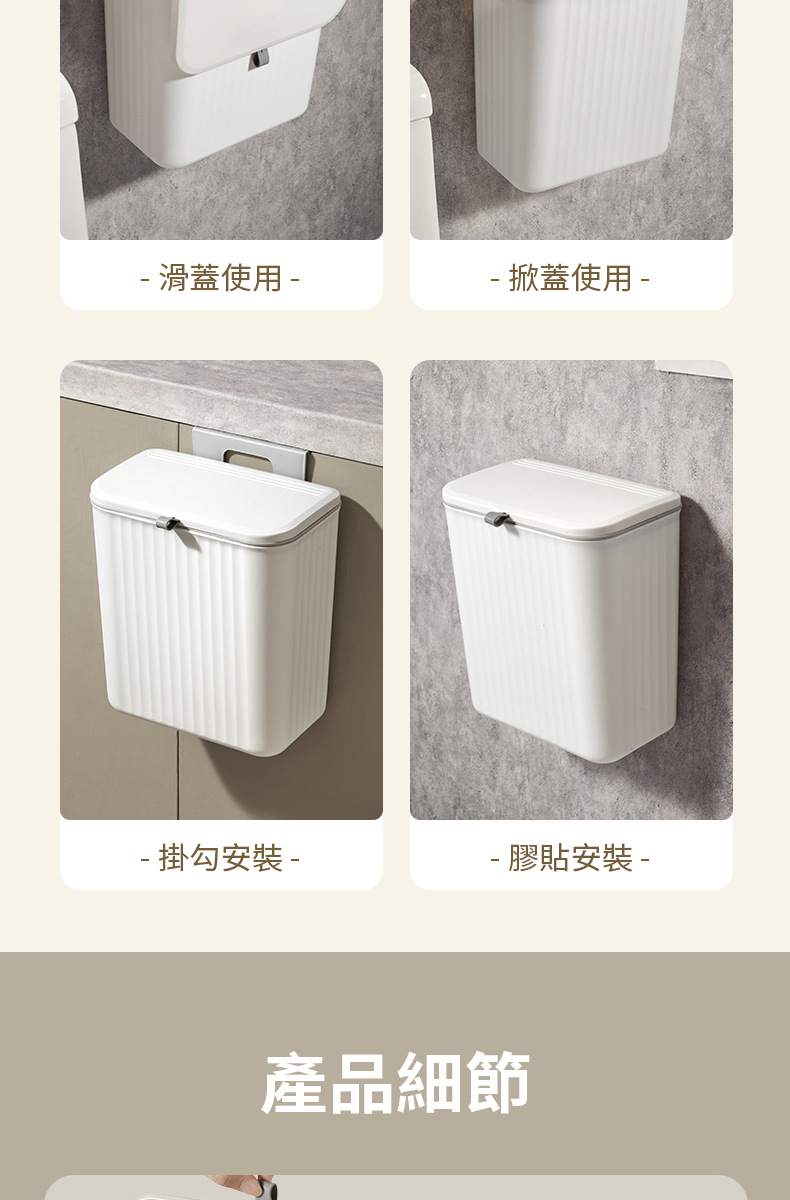 【NINORIVA 尼諾里拉】家用壁掛式8L垃圾桶