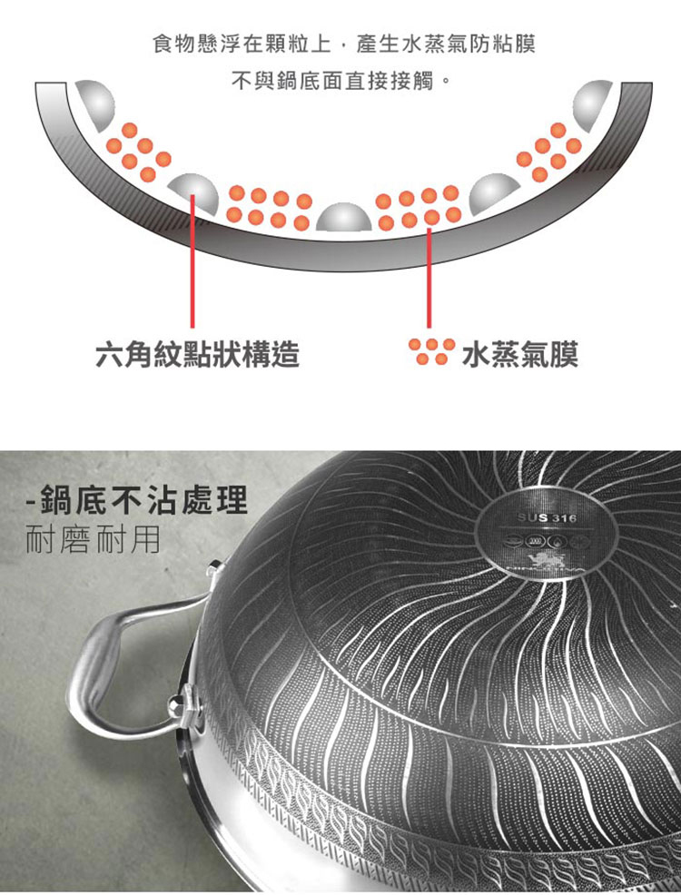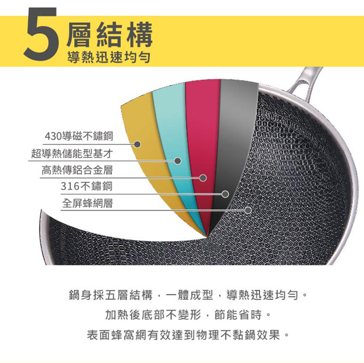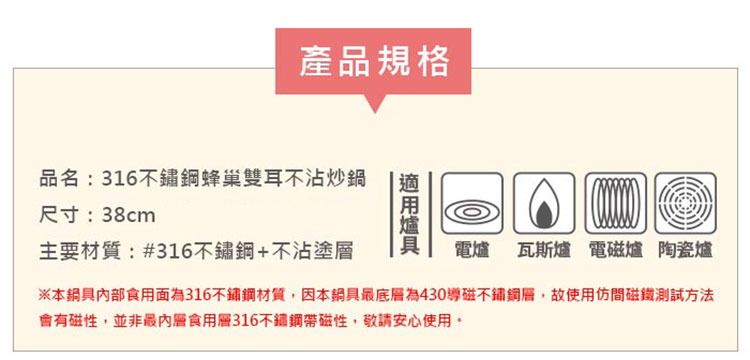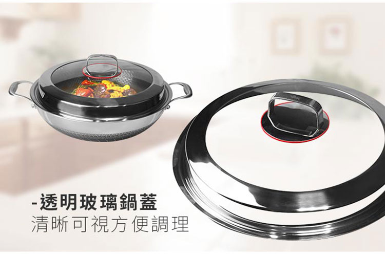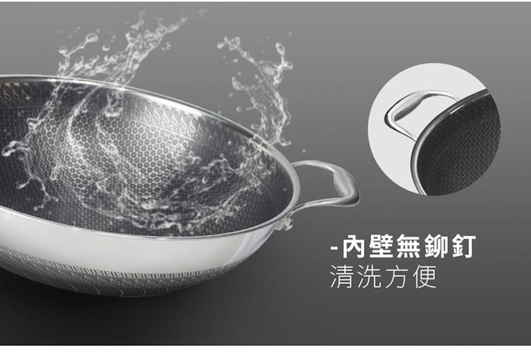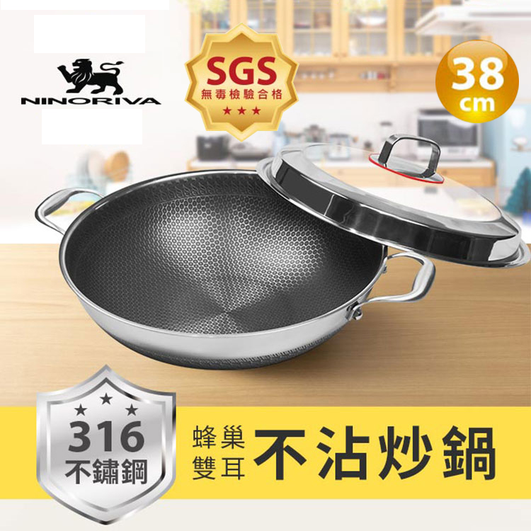 【NINORIVA 尼諾里拉】316不鏽鋼38cm蜂巢雙耳不沾炒鍋
