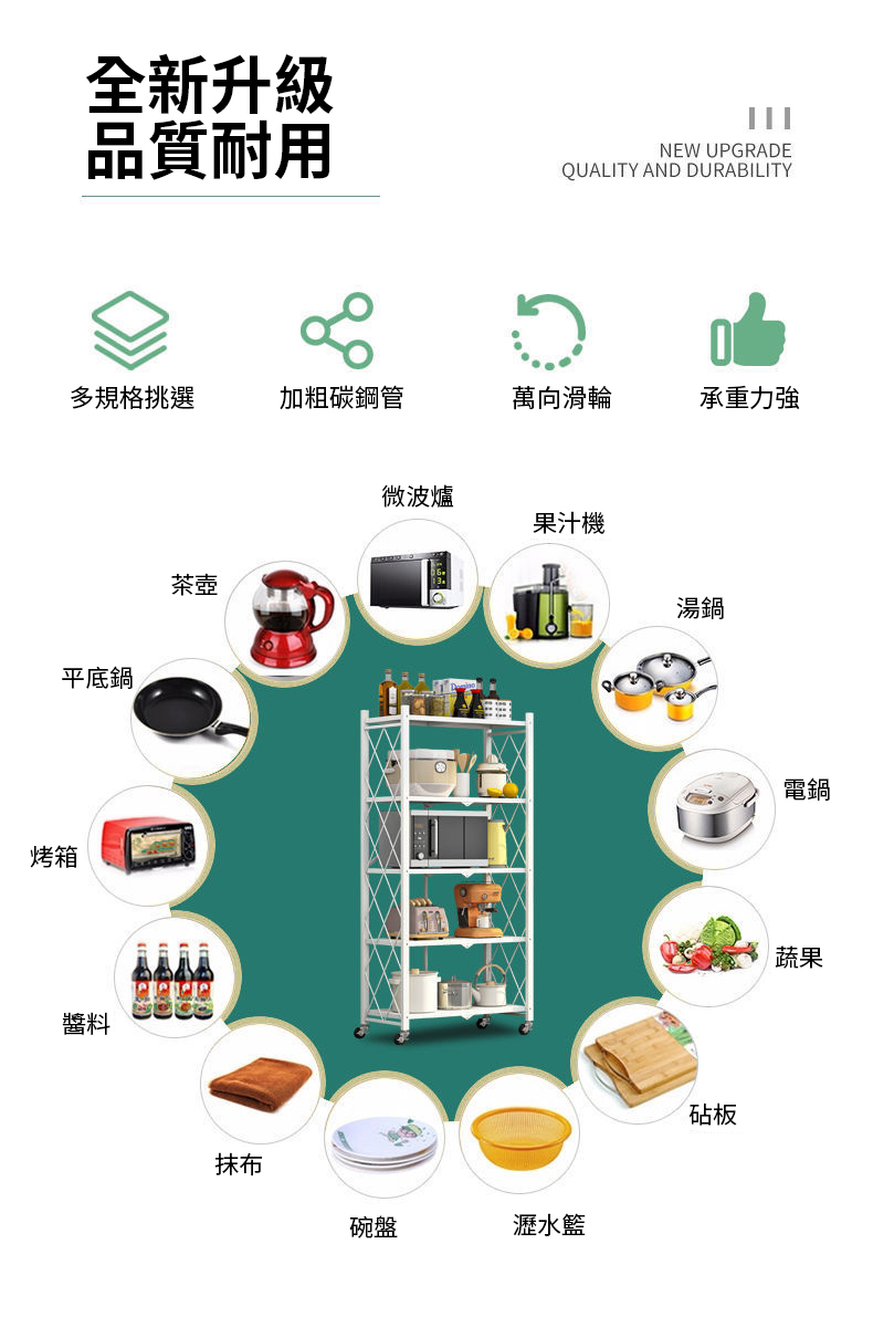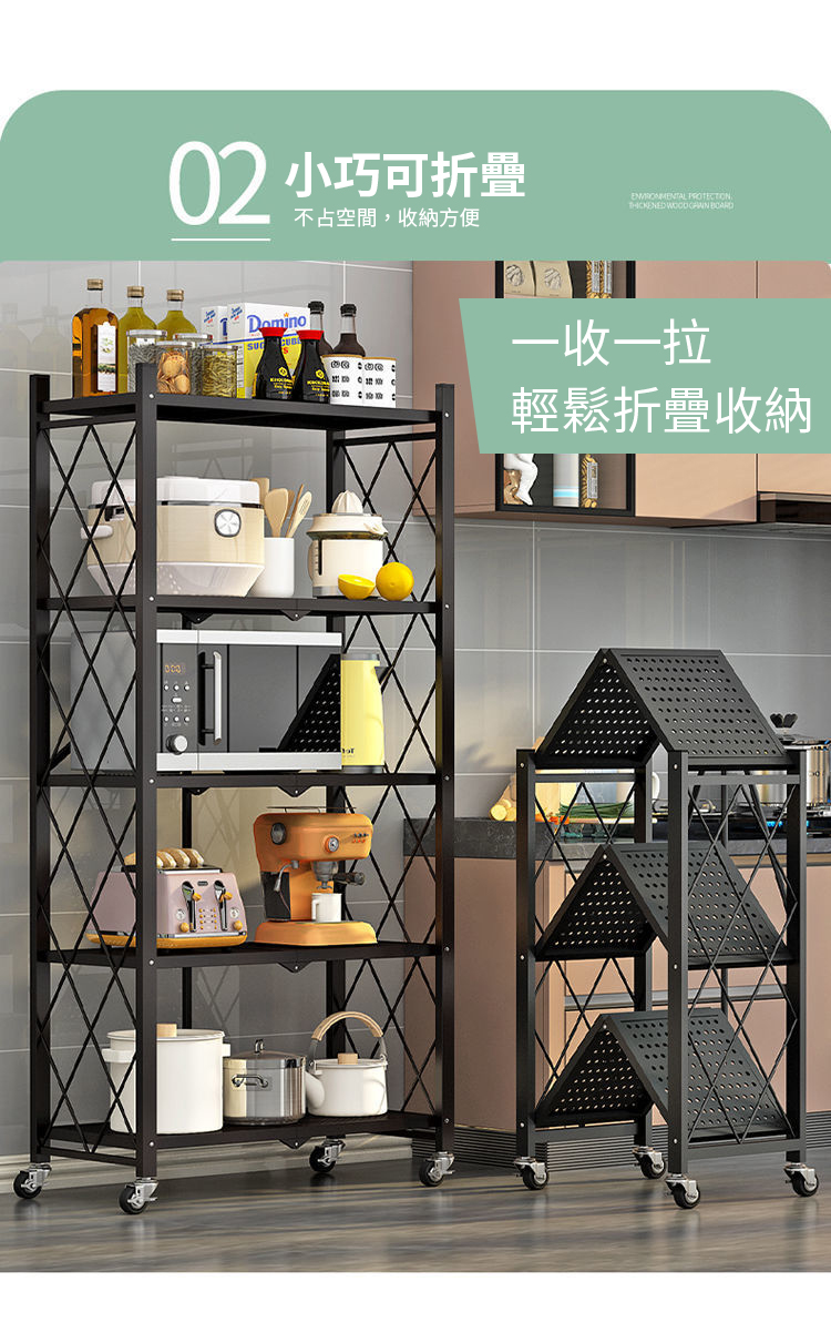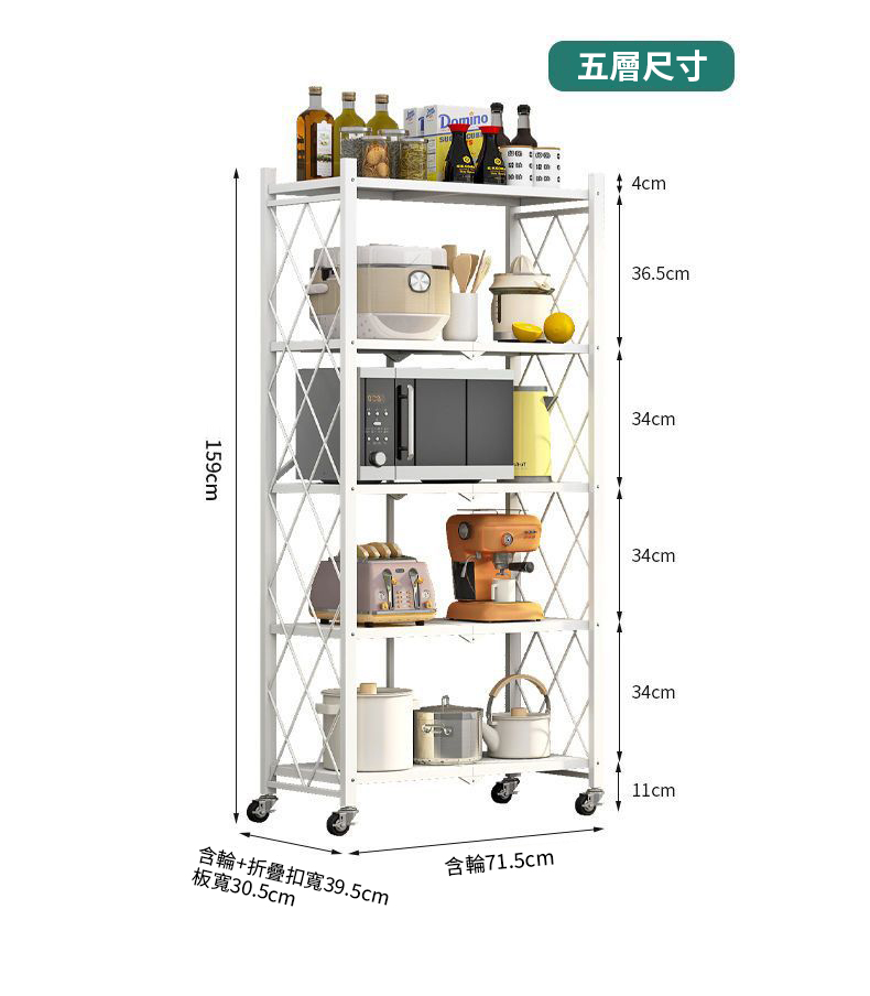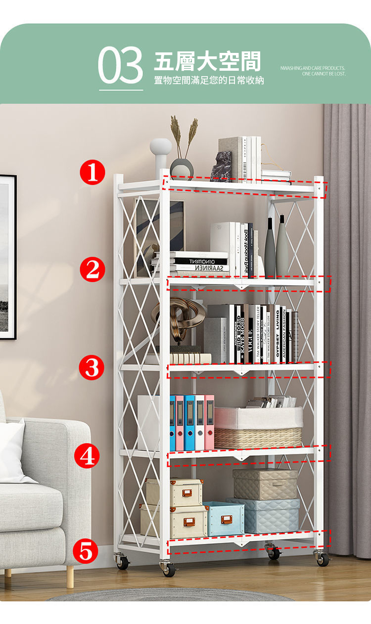 【NINORIVA 尼諾里拉】免安裝廚房折疊置物架(五層)