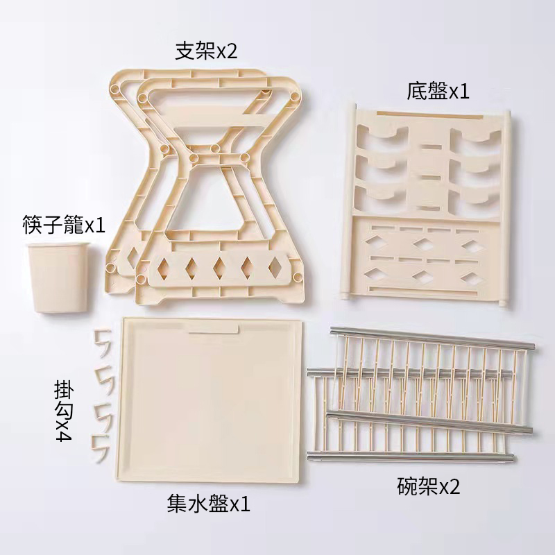 產品配件:支架x2,碗架x2,底盤x1,掛勾x4