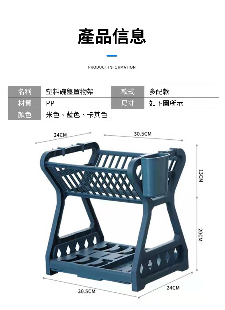 產品配件:支架x2,碗架x2,底盤x1,掛勾x4,筷子籠x1,集水盤x1